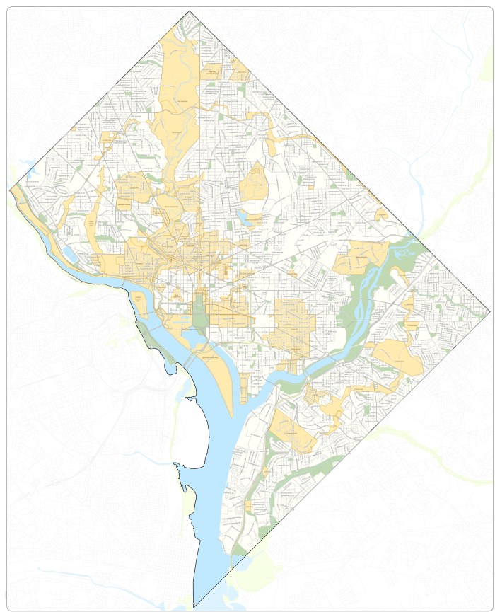 The history of Washington, DC is complex, and the history of historic districts in the city has been as well, starting with the first historic district designation of Georgetown in 1950. Over time, as you can see in this 2014 historic district map, the number and coverage of historic districts has grown greatly (though many of the larger districts pictured are National Parks, e.g. Rock Creek Park). The main point of interest for this project is the timing of historic district designation: in my analysis, neighborhoods are usually only designated as historic after a process of gentrification, even in the case of Georgetown.